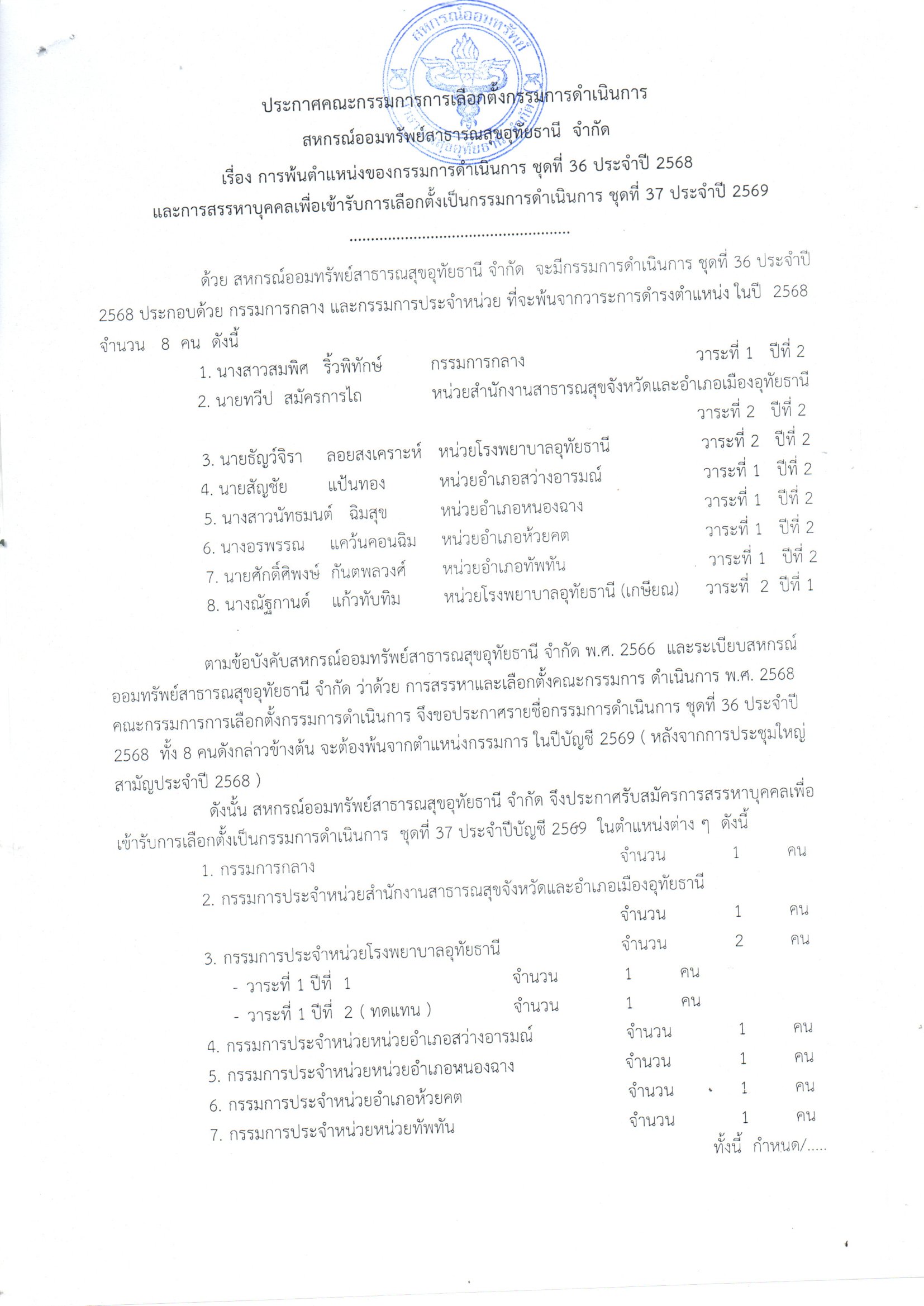 ประกาศ เรื่อง การพ้นตำแหน่งของกรรมการดำเนินการ ชุดที่ 36 ประจำปี 2568