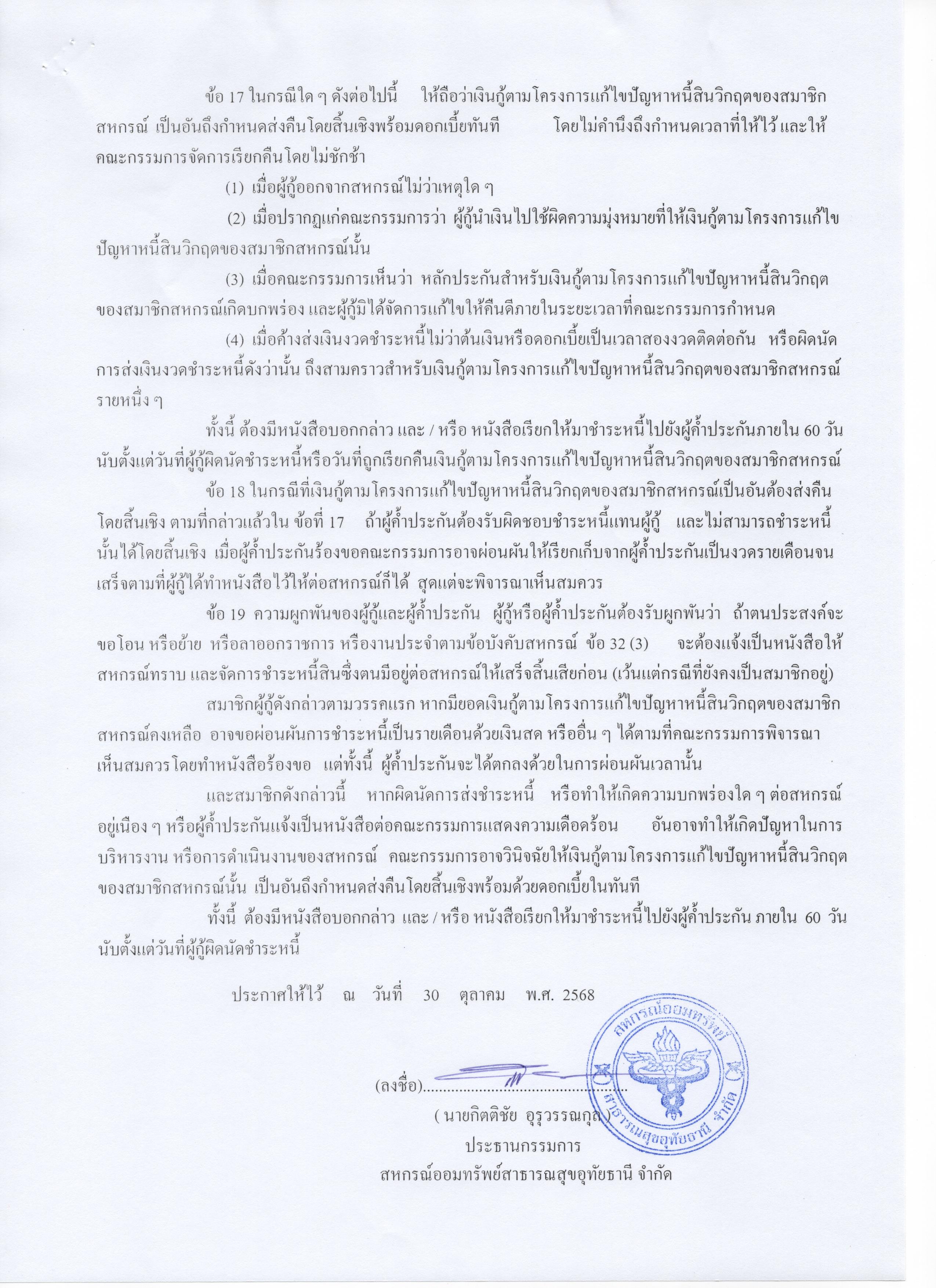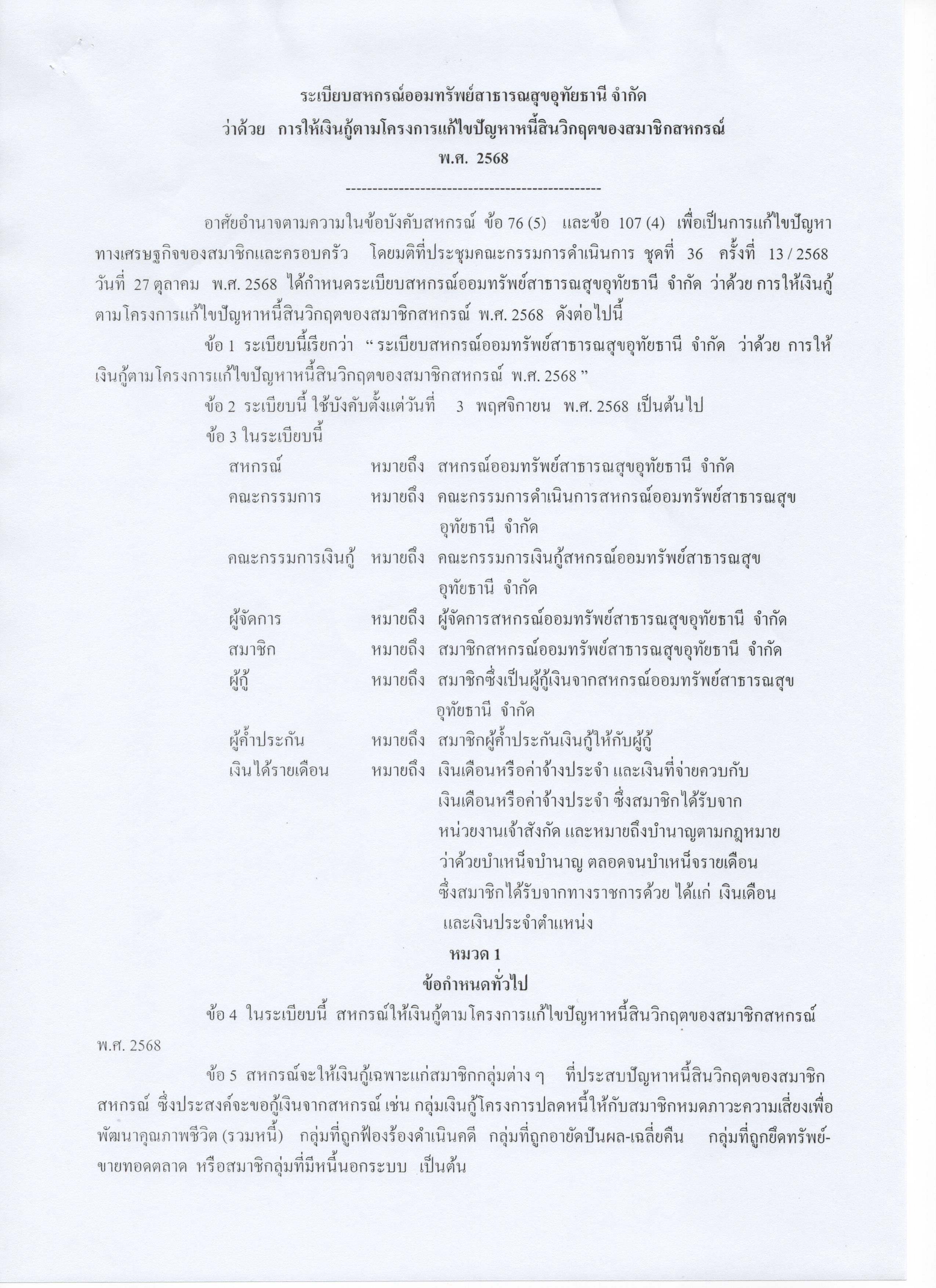 ระเบียบ ว่าด้วย การให้เงินกู้ตามโครงการแก้ไขปัญหาวิกฤตของสมาชิกสหกรณ์ 2568