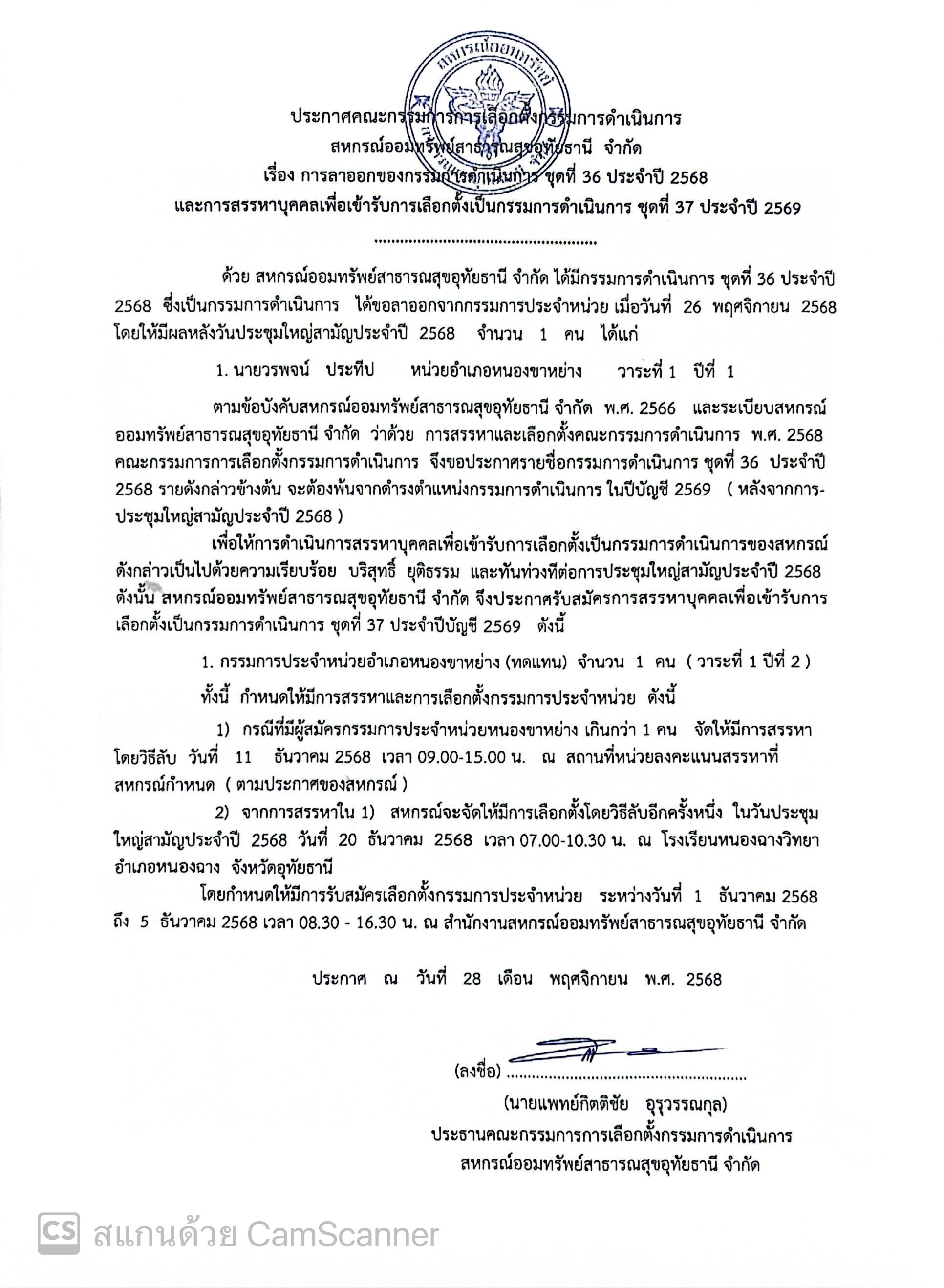 ประกาศ เรื่อง การลาออกของกรรมการดำเนินการ ชุดที่ 36 ประจะจำปี 2569